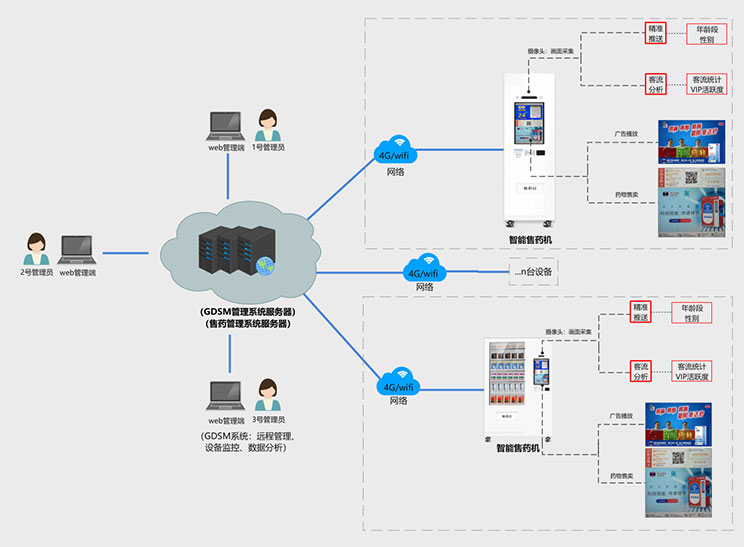 2、一機(jī)多用:商品自助售賣(mài),廣告精準(zhǔn)推送,客流統(tǒng)計(jì)分析等。
