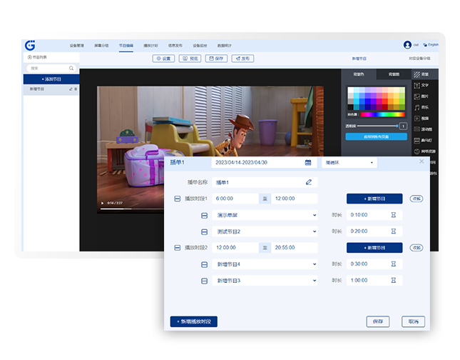 數字化信息發布管理系統GDSM-C區別于傳統信息發布方式,能有序高效地發布節目,管理系統簡潔方便,可操性高。可直接利用后臺輕松進行節目設計,多樣化素材可供選擇,易于維護。