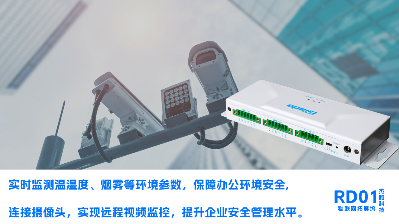 在企業中,RD01可以連接各種傳感器,實時監測溫濕度、煙霧等環境參數,保障辦公環境的舒適與安全。同時,通過連接攝像頭,實現遠程視頻監控,提升企業安全管理水平。