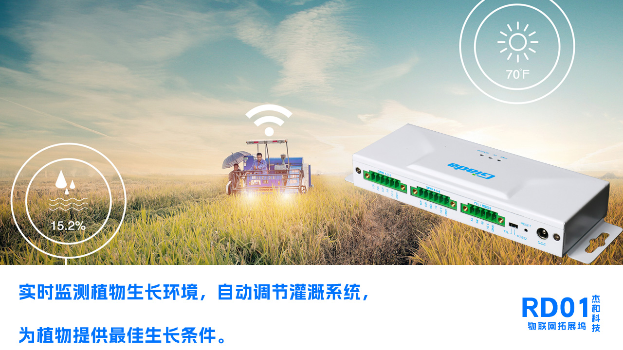 RD01搭配土壤濕度傳感器、光照傳感器等,可以實時監測植物生長環境,自動調節灌溉系統,為植物提供最佳生長條件。