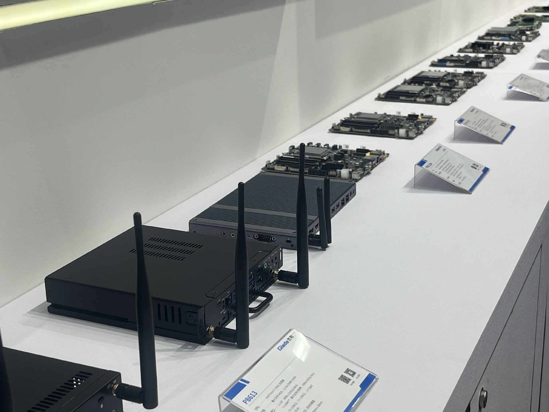 杰和科技展位放置在c位的明星產品和最新產品吸引了眾多參觀者的目光。展臺下方整齊排列著公司的產品,包括主板、嵌入式整機、OPS等,這些產品不僅適用于商業展示領域,還廣泛應用于工業、制造業和教育業等多個行業。