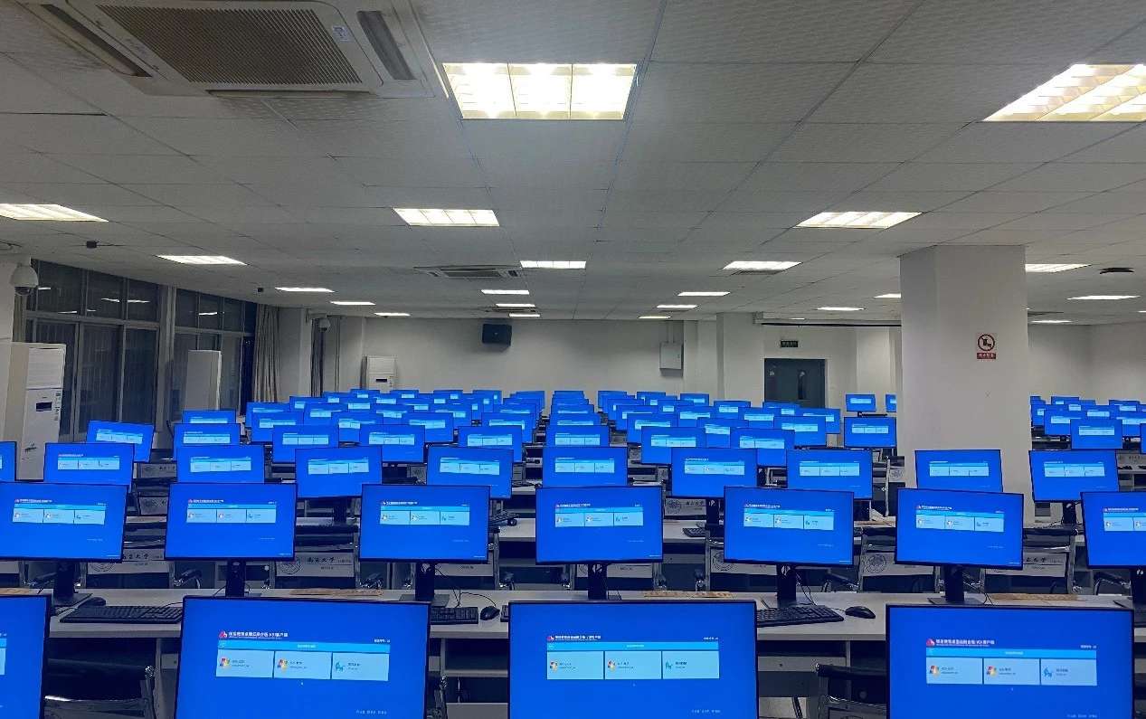 在某大學實訓室,整齊的電腦屏后面是統一的杰和科技云終端主機,老師在講臺上通過電腦端的管理軟件,輕松地將教學資料推送到學生的終端上,每位學生的電腦屏幕一致會出現同個頁面。