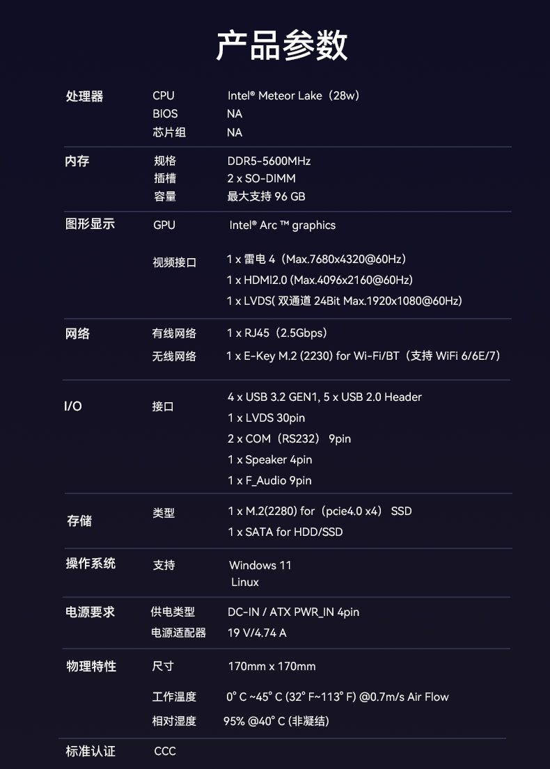 CB4-411主板采用英特爾Meteor Lake平臺,適配Ultra5、Ultra7、Ultra9H系列處理器,這些處理器以卓越的性能和能效,為各種計算任務提供了強大的支持。主板采用雙通道DDR5可拆內存插槽,最大容量96GB,同時運行多個大型程序、處理大型文件也不卡頓。