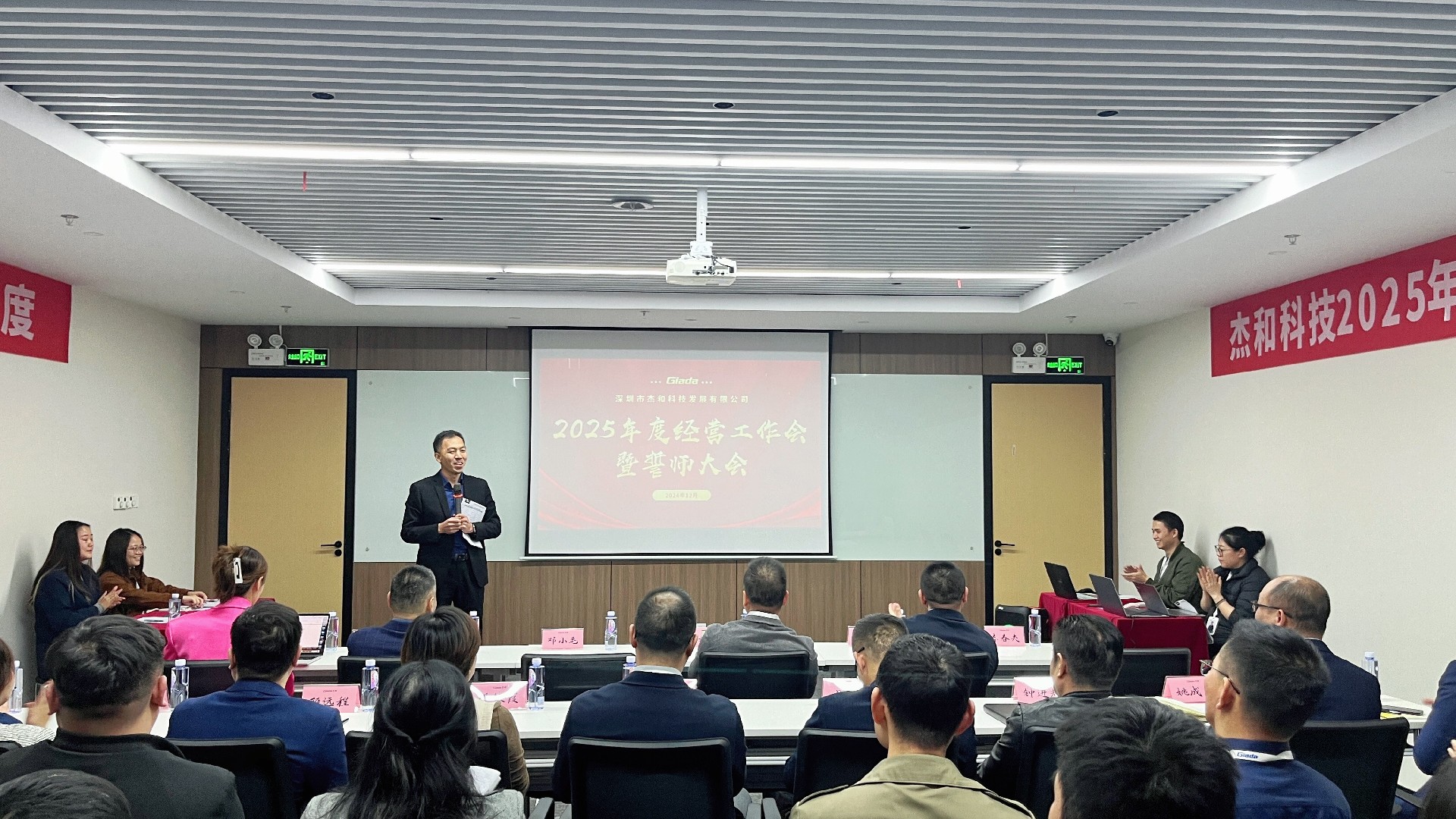 2024年12月27日,杰和科技召開了主題為“蓄勢新動能,勇闖新高度”的2025年度經(jīng)營工作會暨誓師大會。公司高管、一級部門負(fù)責(zé)人、國際/國內(nèi)營銷中心全體員工齊聚一堂,聚焦2025年戰(zhàn)略方向,明確2025年工作目標(biāo)和實施計劃,同步啟動軍令狀簽署儀式、年度PBC簽訂儀式,為新一年的發(fā)展吹響前進(jìn)的號角。