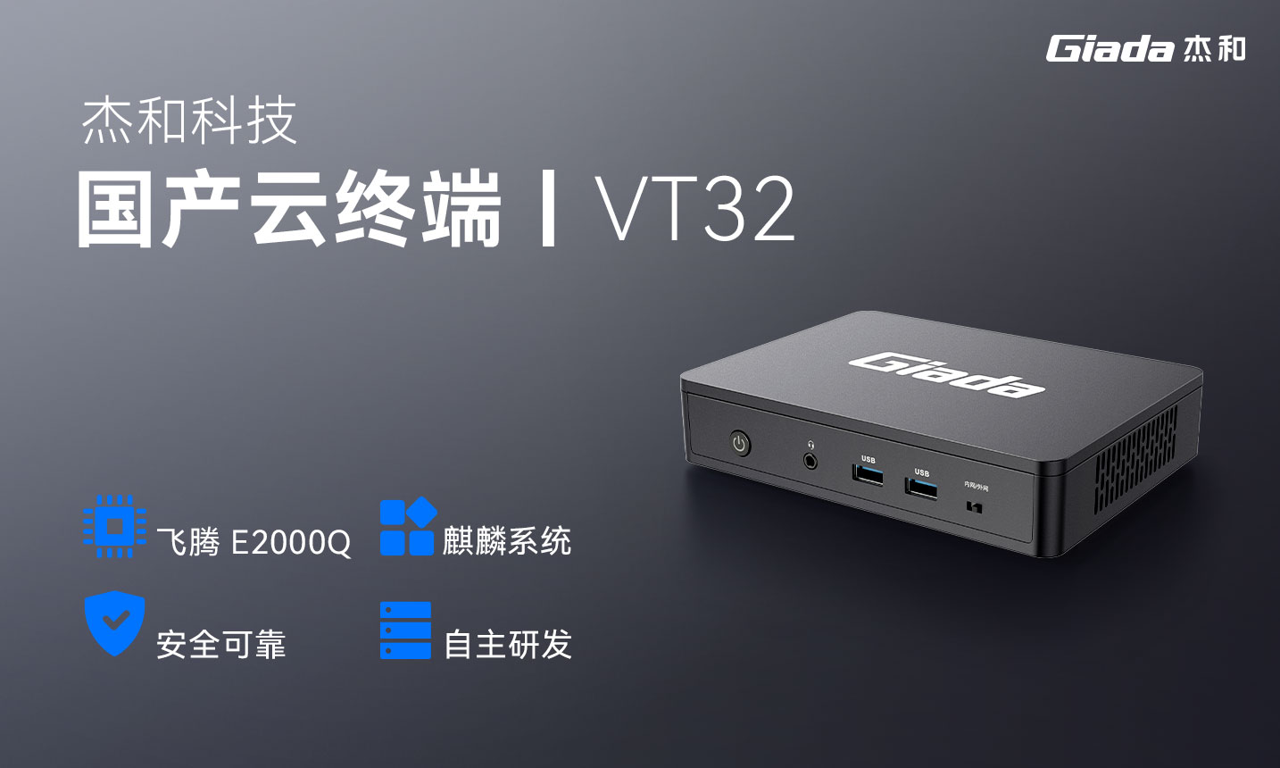 杰和科技推出的云終端VT32,以飛騰騰瓏E2000Q處理器+銀河麒麟系統(tǒng)為核心,為政府、金融、能源、醫(yī)療等關鍵行業(yè)提供安全、高效、易管理的國產(chǎn)化桌面云終端方案,助力構建自主可控的IT基礎設施。