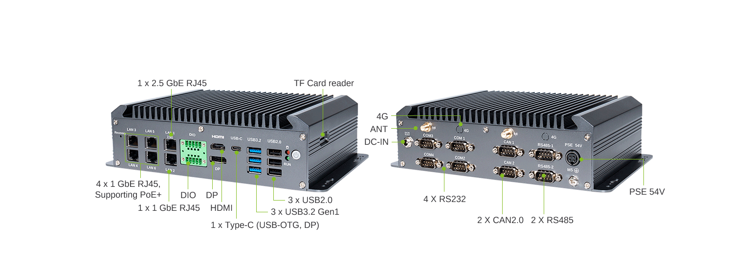 豐富接口適配:配備 RS485、CAN、HDMI?、LVDS、USB、網口、DI、DO 等多樣 I/O 接口,能滿足多設備連接需求,為機器人功能擴展與系統集成提供便利。