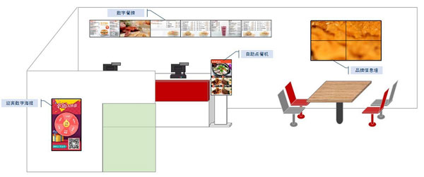 品牌信息墻分為一組由杰和科技G468四屏拼接控制器控制的4塊LCD高清液晶顯示屏,可以實現大畫面播放及單屏獨立播放。內容管理者可通過GDSM系統操作端隨時更新菜單內容及新品廣告,讓信息的發布更為及時有效。