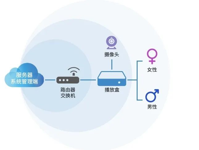 融合人工智能技術,采用專業的人臉識別算法,通過終端接入攝像頭獲取識別人體畫像,并分析判斷其年齡、性別等屬性,實現自動推送與客戶匹配度高的廣告內容,針對新老客戶、不同會員等級客戶區別性播放廣告。