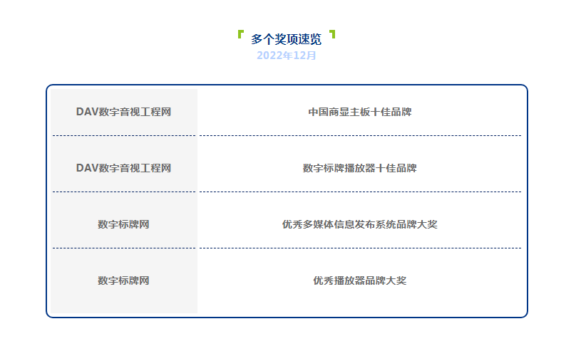 「優秀多媒體信息發布系統品牌大獎」「優秀播放器品牌大獎」
