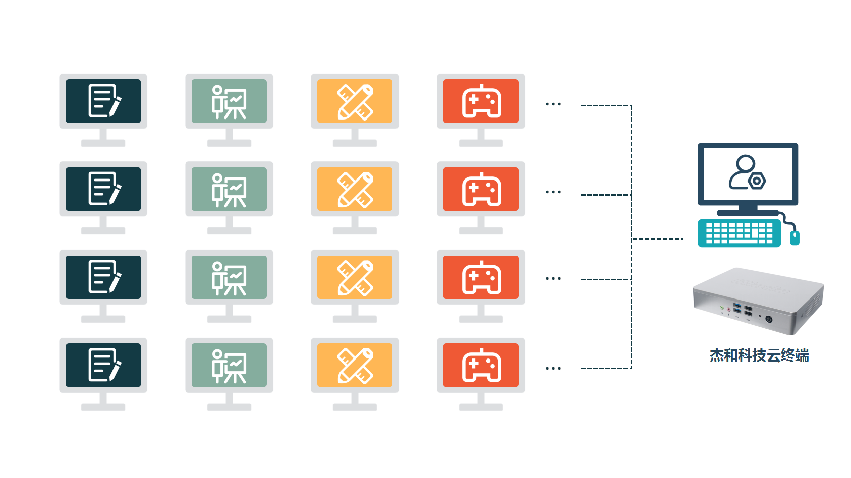 云電腦的應用不局限于企業,亦可在政務、教育、醫療等多種應用場景廣泛使用,針對不同的場景適配不同的云終端產品,實現資源利用和性價比的最大化,但不會選又成為用戶需要面臨的新困擾。杰和對用戶的需求進行了充分的調研,云終端系列產品針對不同需求和應用場景提供了多種解決方案,以產品的多樣性實現全場景覆蓋。