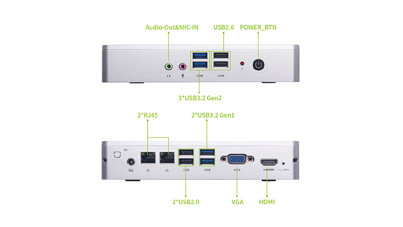 VT26使用IntelUHD Graphics,支持4K超高清內容顯示,提供高清流暢的桌面體驗,擁有2組USB3.2Gen2,2組USB3.2 Gen1,4組USB2.0接口;1組音頻輸入/輸出和1組二合一音頻接口;1組RJ45網絡接口;具備性能優秀、擴展性強、安全性高等優勢。