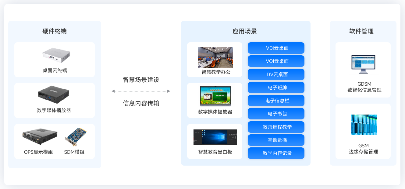 杰和智慧校園解決方案是基于智能硬軟件打造數字化教學場景,實現智慧課堂、智慧黑白板教學,建設多媒體信息發布平臺,優化校園管理模式,讓前沿科技融入實際教學,實現教育體系各類軟硬件和各個角色之間的緊密連結,提升教學質量,最終推進教育數字化轉型。