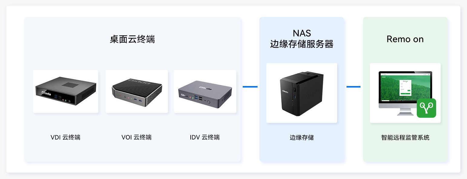 方案涵蓋云終端、邊緣存儲(chǔ)服務(wù)器、數(shù)字標(biāo)牌、OPS等智能硬件產(chǎn)品,以及Remo On智能遠(yuǎn)程監(jiān)管系統(tǒng)、GSM邊緣存儲(chǔ)管理系統(tǒng)等軟件,提供智能辦公硬軟件一體化服務(wù),提升員工的辦公體驗(yàn),實(shí)現(xiàn)可視化、數(shù)據(jù)化、信息化、智能化管理。