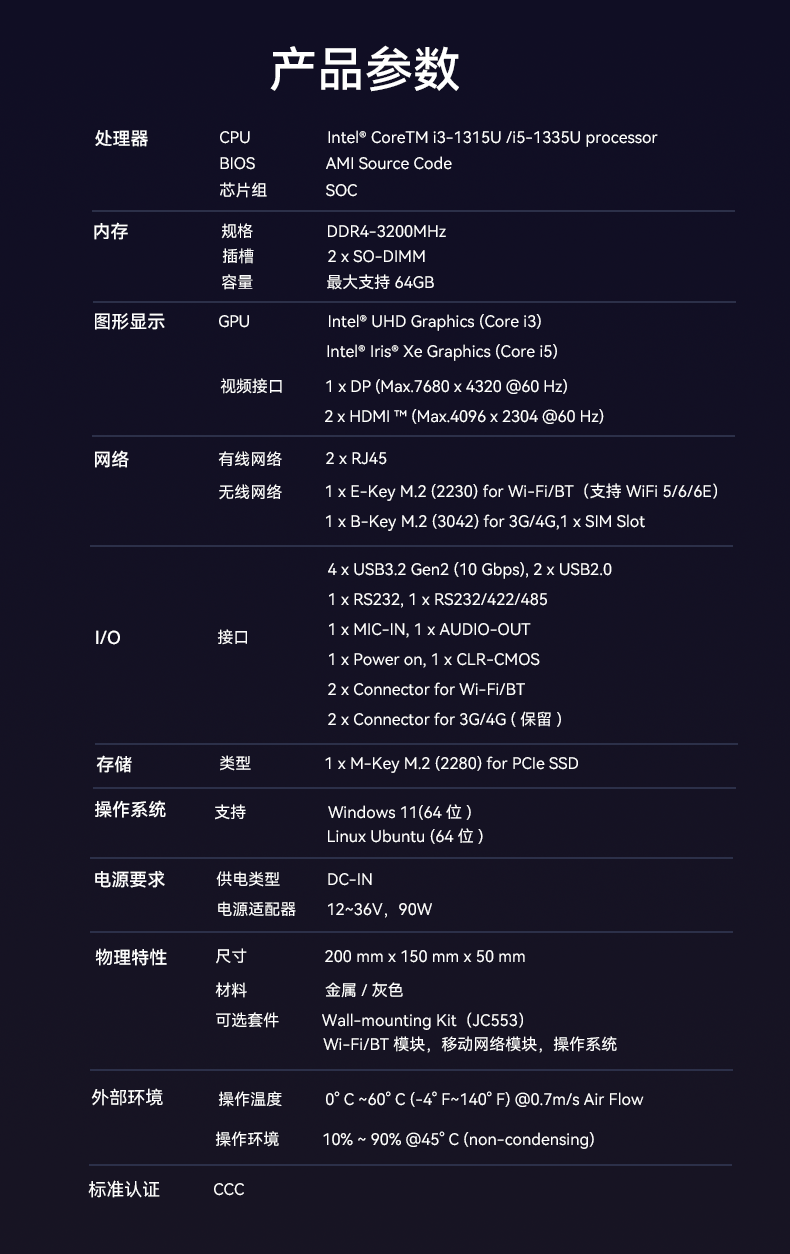 高性能13代無風扇寬溫寬壓嵌入式整機