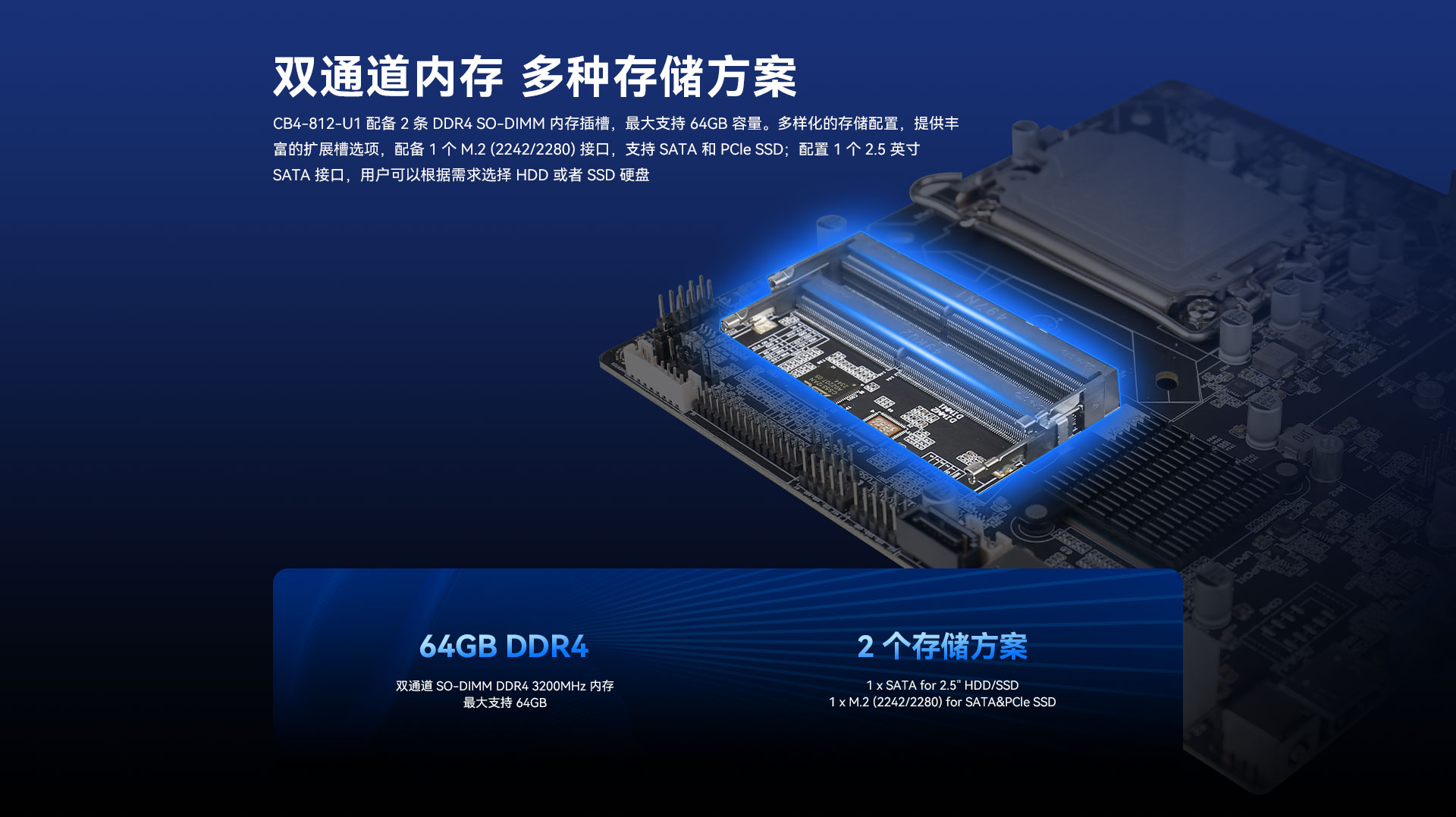| 存儲(chǔ) | 類型 | 1 x M.2(2242/2280) for(pcie3.0 x4&SATA)SSD 2 x SATA for HDD/SSD |