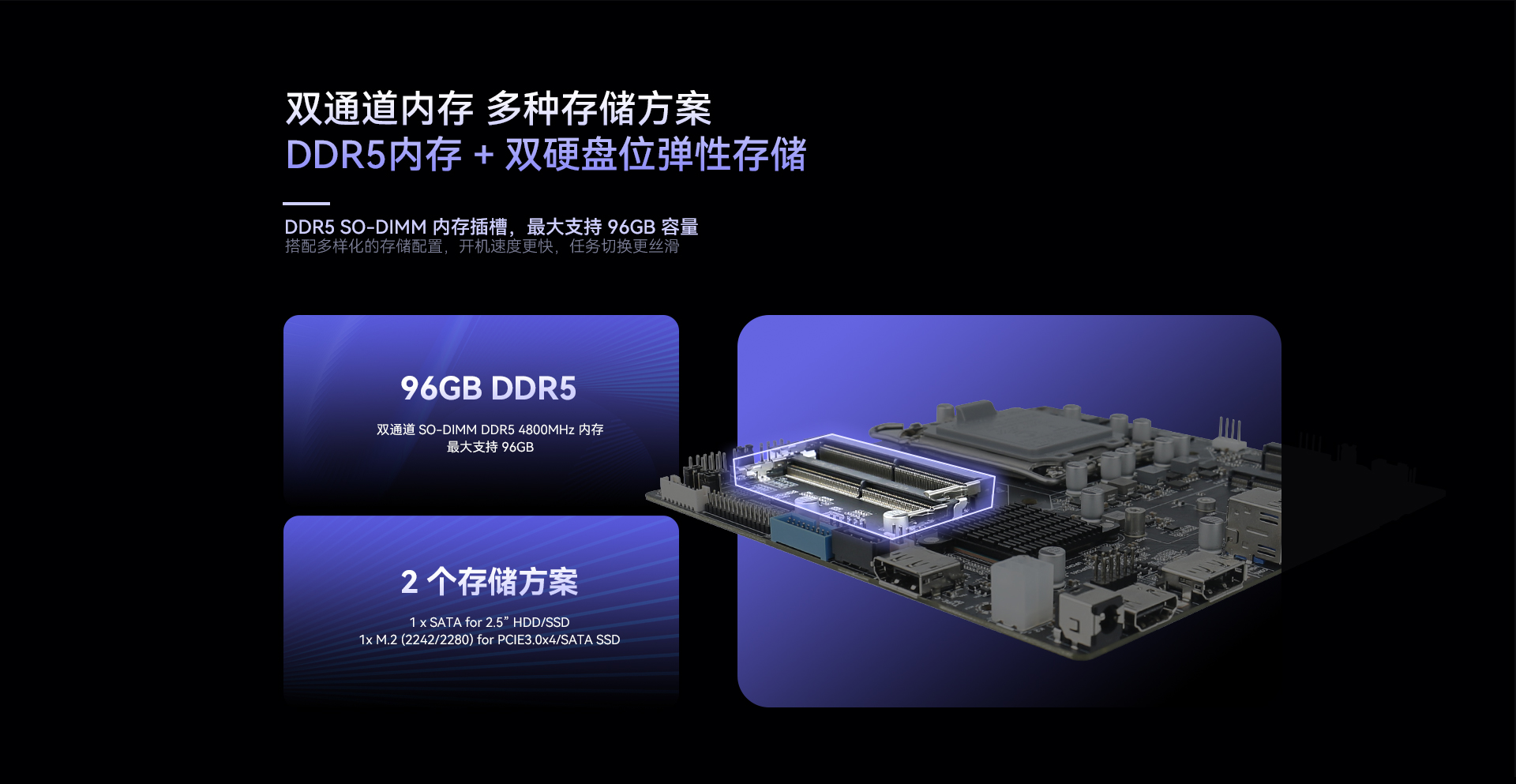 | 存儲 | 類型 | 1 x M.2(2242/2280) for(pcie xSATA)SSD 2 x SATA for HDD/SSD |