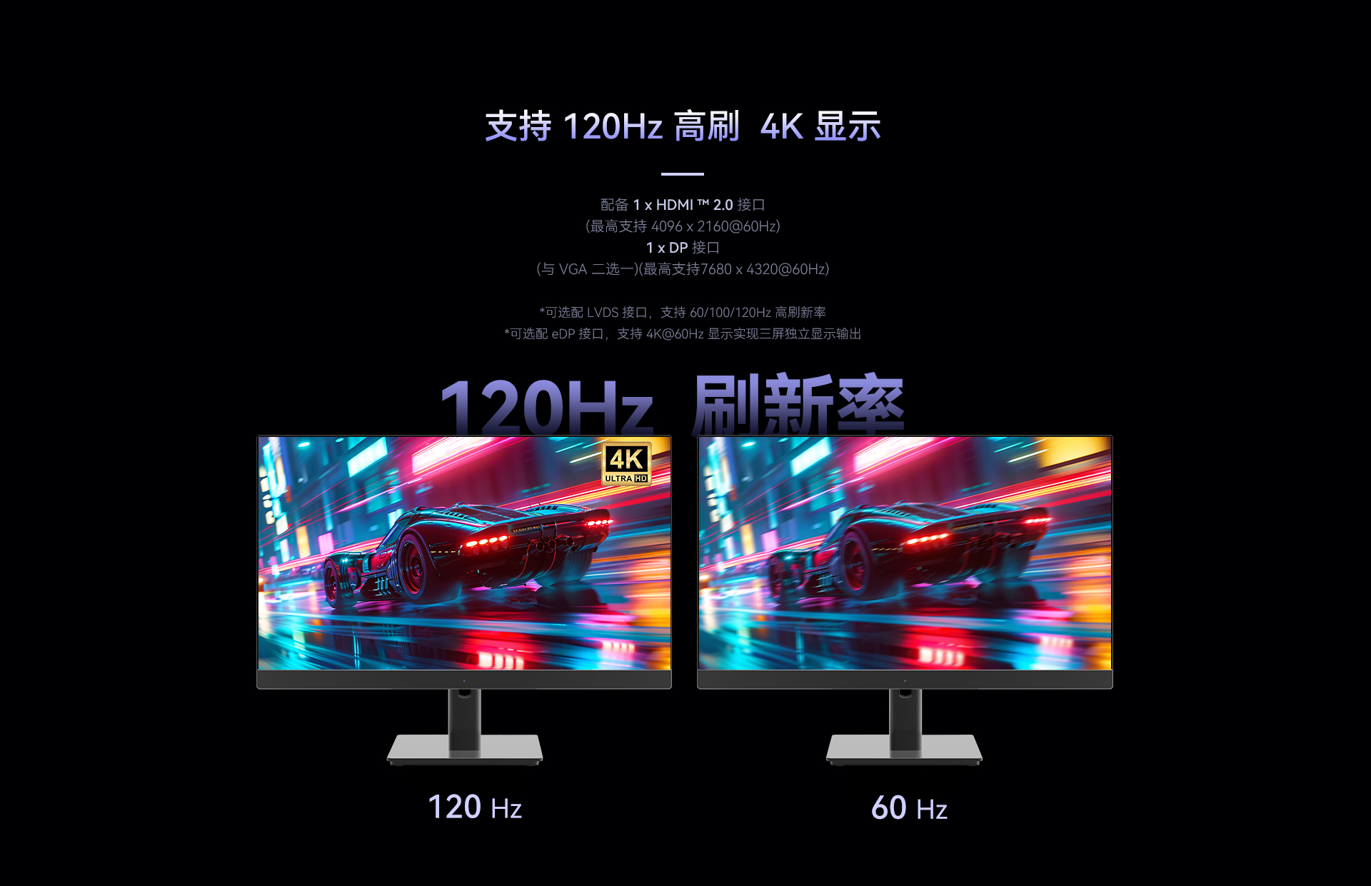 側面eDP可支持4K高清,LVDS支持120Hz高刷(可選)