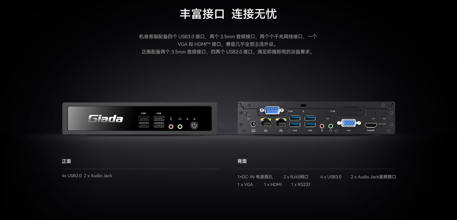 | 音頻接口 | 4 x Audio Jack(前后各2個) | |