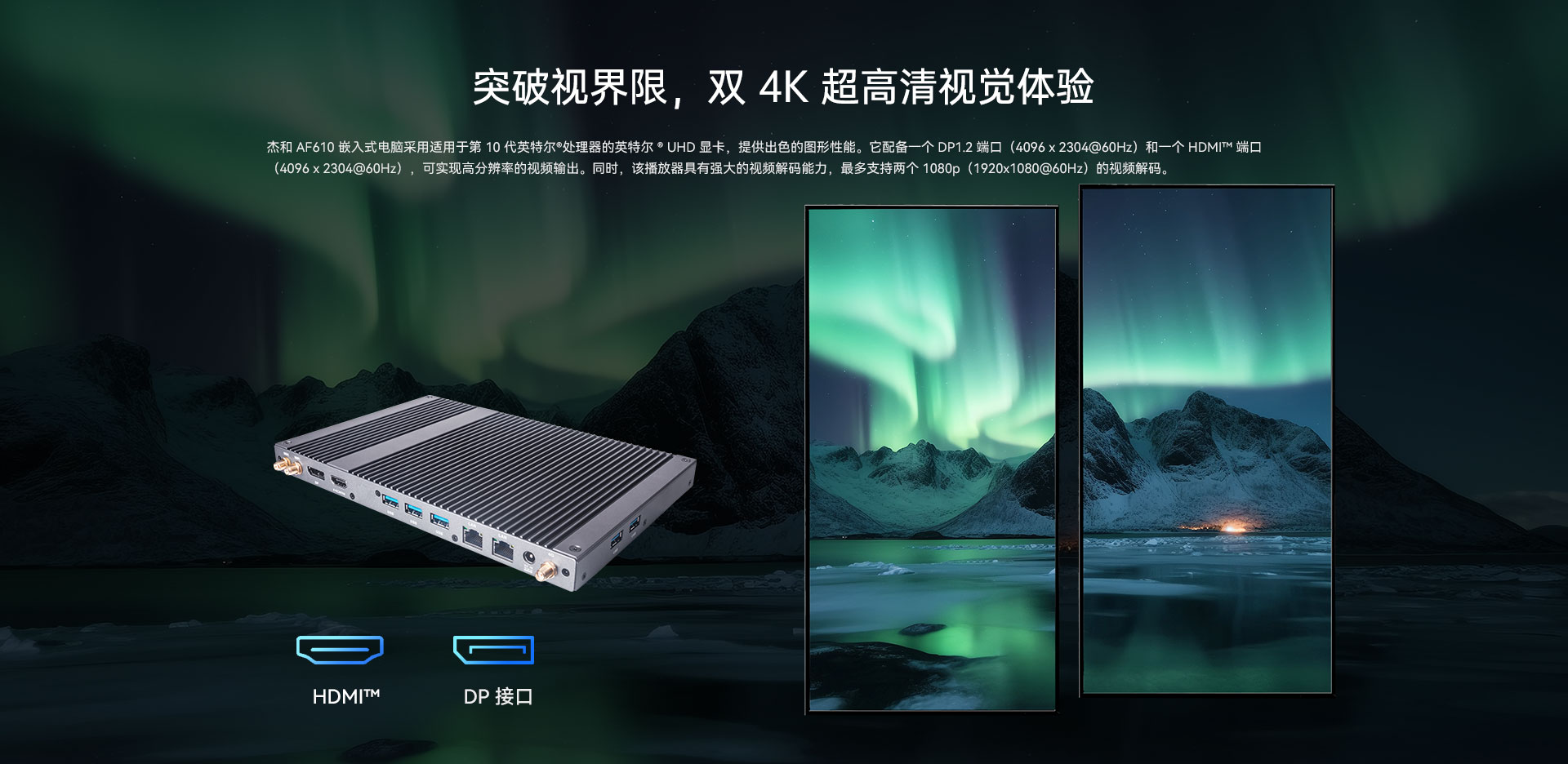| 視頻接口 | 1 x HDMI (Max. 4096 x 2160@60Hz) 1 x DP (Max. 4096 x 2160@60Hz) JAE端:1 x HDMI (Max. 4096 x 2160@60Hz) | |