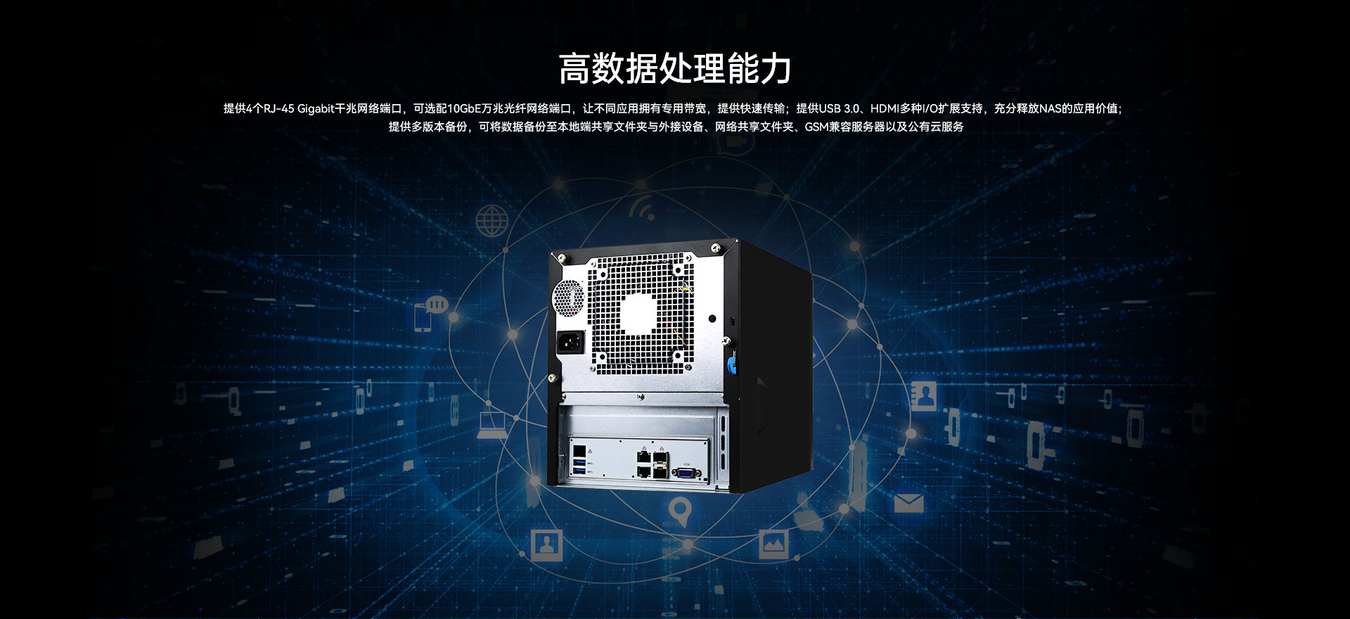 | 存儲 | 接口1 | 4 x 3.5英寸SATA硬盤(支持熱插拔)1 x 2.5英寸SATA硬盤(不支持熱插拔) |